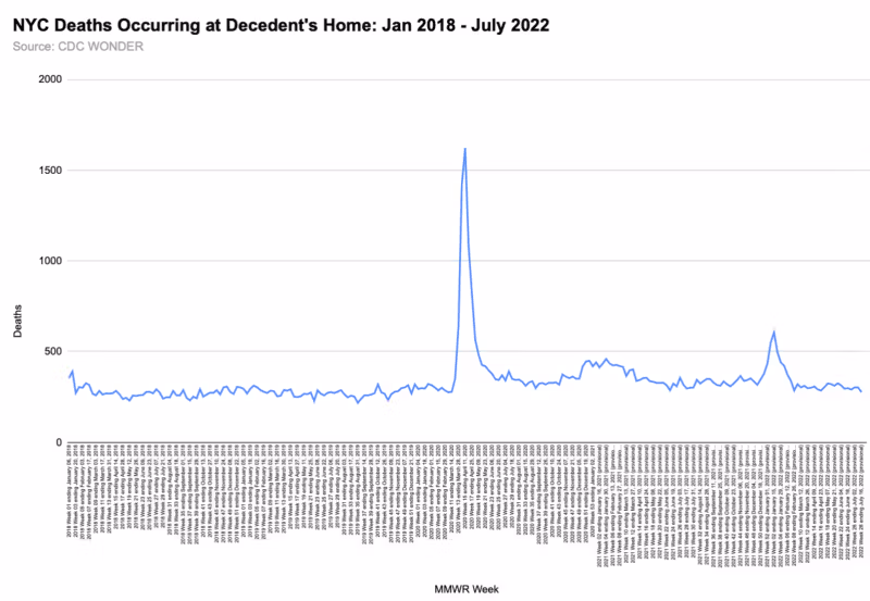 Vastupidiselt ajakirjale The Narrative ei tulnud kuberner Cuomo koduspüsimise korraldused „just õigel ajal“, et päästa New Yorgi tervishoiusüsteemi kokkuvarisemisest. Need vallandasid vapustava enam kui 60% languse erakorralise meditsiini osakonda saabuvate või sinna toodud inimeste arvus. (New Yorgi osariigi 2020. aasta kevade erakorraliste külastuste arv vähenes isegi suurem kui Chicago oma.) See on linna rekordiliselt suur arv inimesi, mistõttu on seda raske tunnistada. Kiirabikõned ja haigla, ambulatoorse ravi ja erakorralise meditsiini osakonna surmajuhtumid kevadel 2020.