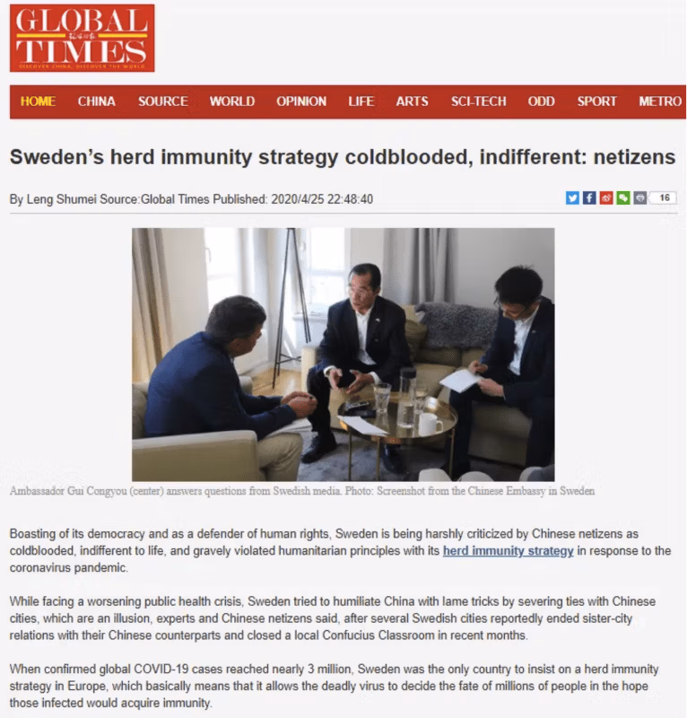 Isegi sotsiaalmeedias oli viiruse arutamine üllatavalt leebe. Enne seda Lombardia, Itaalia sulgemine, on raske identifitseerima isegi üksainus inimene maailmas, kes avalikult Hiina sulgemispoliitikat toetas või lootis, et maailm võtab selle omaks. Nädalaid hiljem ilmusid sajad tuhanded säutsud, milles paljudes keeltes ja dialektides imetleti Hiina sulgemisi peaaegu identse sõnastusega, samal ajal halvustades teiste valitsuste kergemeelseid reaktsioone – kuid need säutsud osutusid pärit... eest.